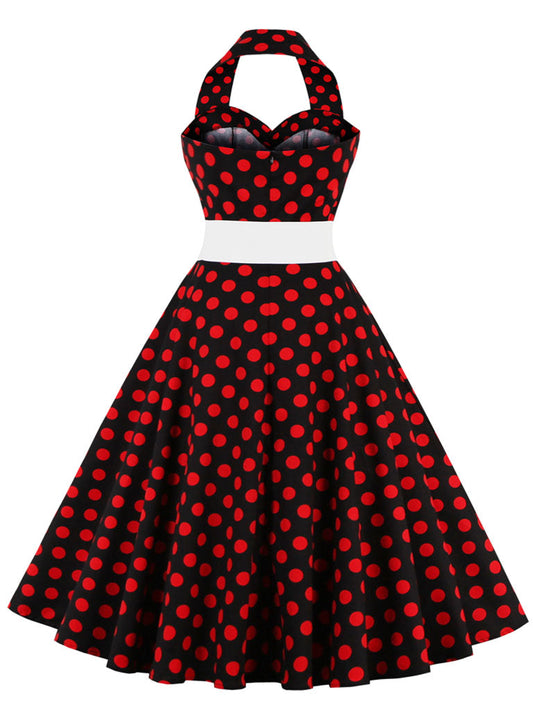 Black Ladybug Off the Shoulder High Waist Halter 1950 Dress