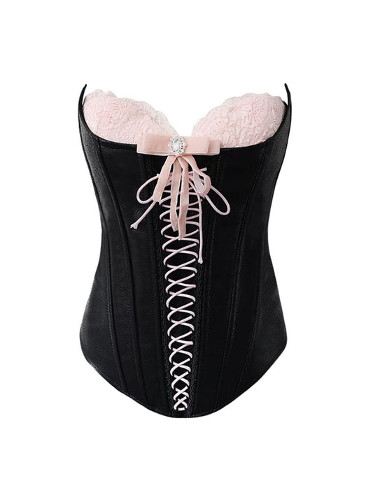 Black And Pink Retro Corset Sleeveless Vintage Top With Skirt Suit