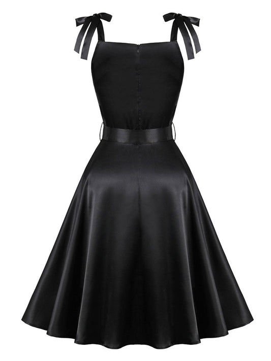 Black 1950S Bow Spaghetti Strap Vintage Swing Dress