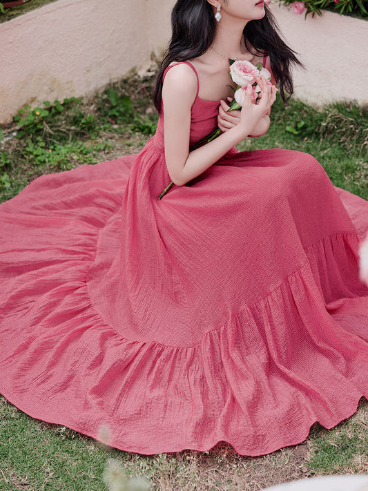 Pink Solid Color Spaghetti Strap Vintage Swing Holiday Maxi Dress