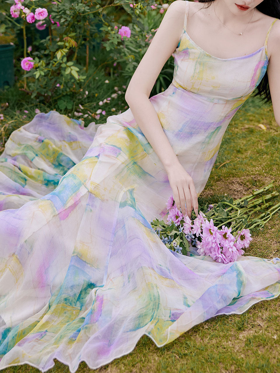 2PS Rainbow Spaghetti Strap 1950S Vintage Dress With Long Sleeve Cardigan