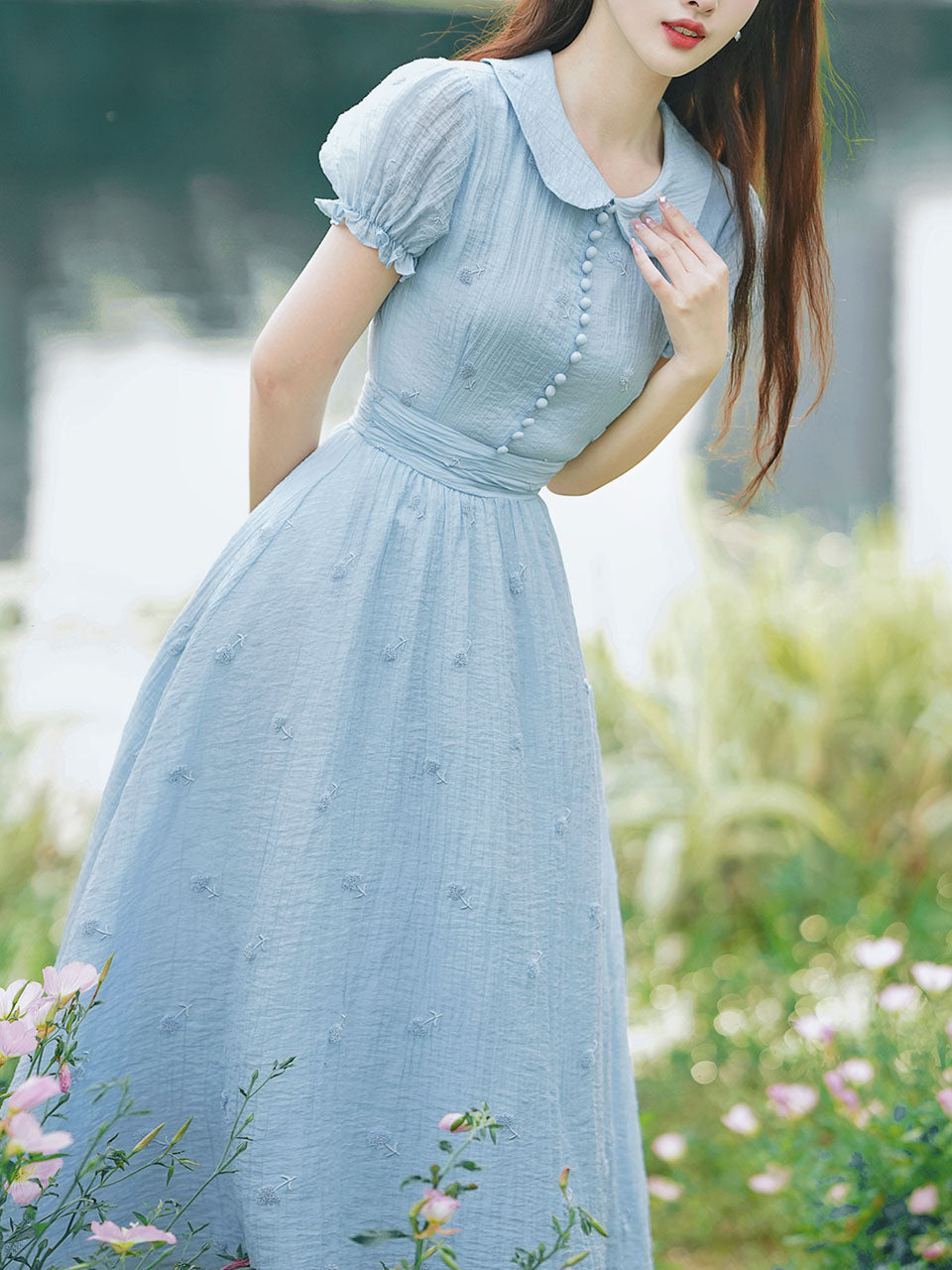 Baby Blue Dandelion Embroidery Peter Pan Collar Vintage Dress
