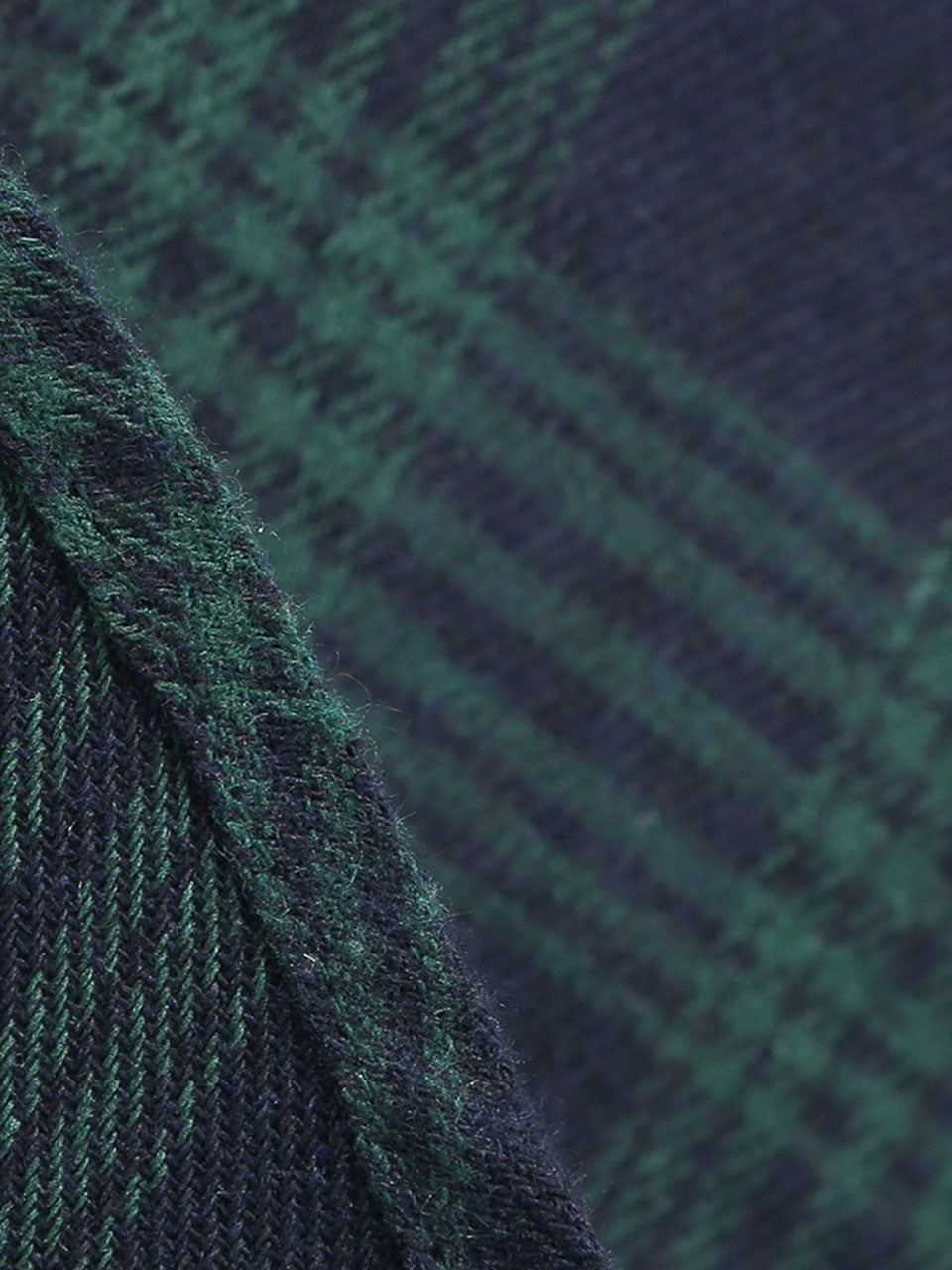 Green Plaid Turn Down Collar Short Sleeves 1950S VintageShirt Dress With Pockets