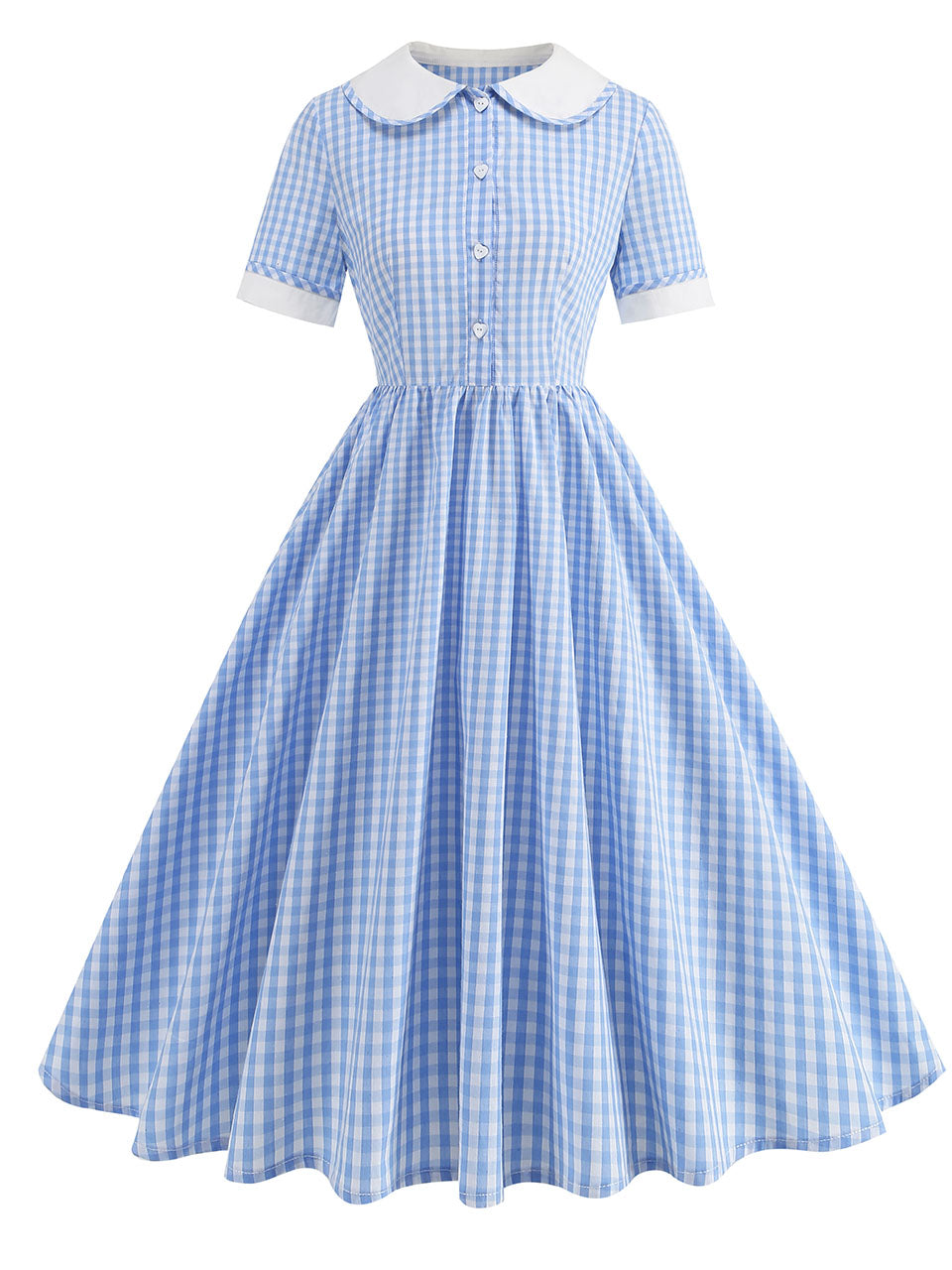 Pink Peter Pan Collar Plaid Short Sleeve 1950S Vintage Swing Dress