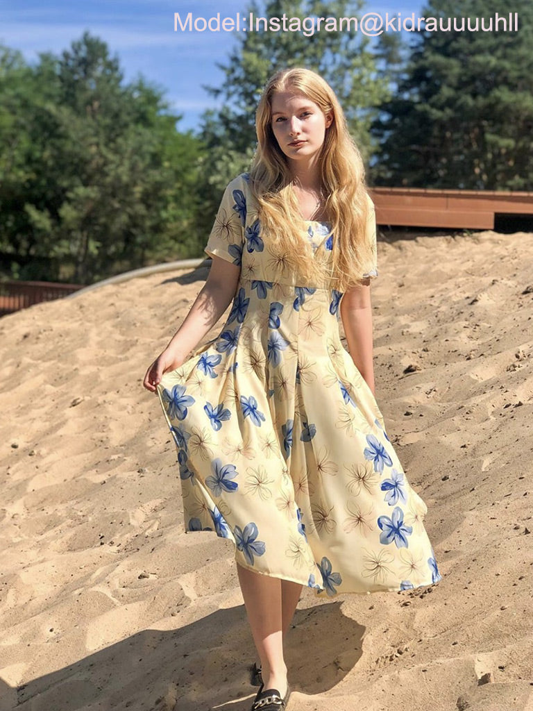 The Marvelous Mrs.Maisel Same Style Yellow Floral Swing 50S Dress with Glass